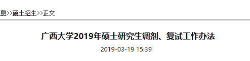 導讀:為了幫助大家做好EMBA調劑準備,小編給大家整理了“EMBA接受調劑的院校 | 廣西大學2019年接收EMBA調劑的通知”,希望對需要調劑的同學有所幫助,以下為調劑通知: