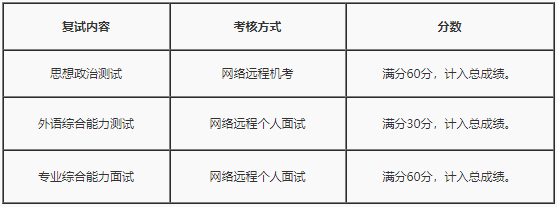1.復(fù)試采取網(wǎng)絡(luò)遠程面試及機考方式進行,包括專業(yè)綜合能力面試、外語綜合能力、思想政治測試。