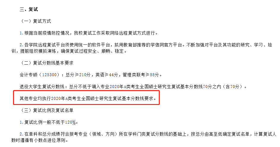 沈陽大學2020年MBA復試基本分數線:175/44/88