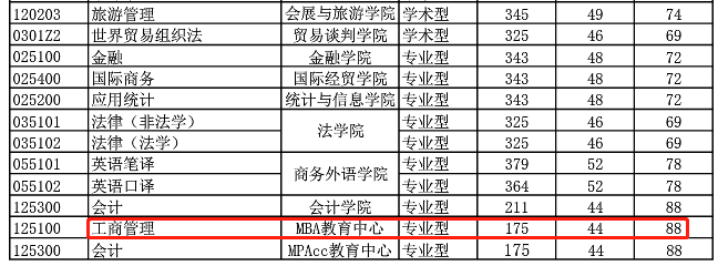 上海對外經貿大學2020年MBA復試基本分數線:175/44/88