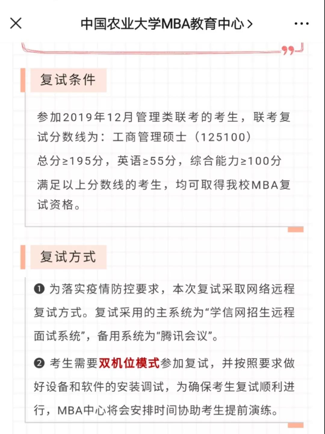 導讀:復試、調劑信息接踵而至,目前北京師范大學MBA、北京交通大學MBA、中國農業大學MBA復試通知已經公布啦!可你會用通知中的復試平臺嘛,指南來了!