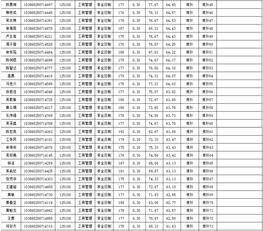 福州大學經濟與管理學院2020年非全日制碩士研究生復試情況公示(工商管理):