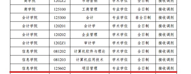 (3)第一志愿報考工商管理、公共管理、工程管理(項(xiàng)目管理)、旅游管理、會計(jì)、圖書情報、審計(jì)專業(yè)學(xué)位的考生可相互調(diào)劑,但不得調(diào)入其他專業(yè);其他專業(yè)考生也不得調(diào)入以上 7 個專業(yè)。調(diào)入工商管理、公共管理、工程管理(項(xiàng)目管理)、旅游管理專業(yè)的考生需滿足高職高專畢業(yè)或大學(xué)本科結(jié)業(yè)滿 5 年、本科畢業(yè)滿 3 年或研究生畢業(yè)滿 2 年(截止 2020 年 9 月 1 日)。