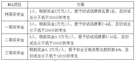 MBA入學獎學金獎項設置