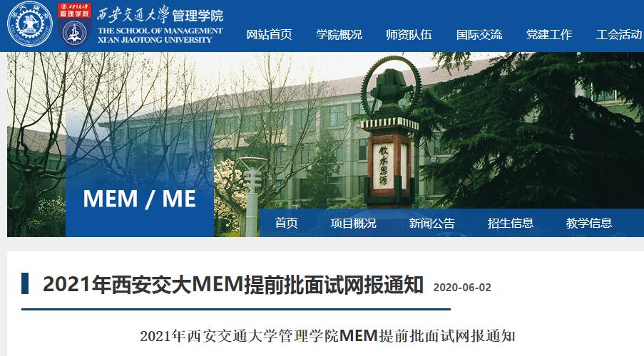 2021年西安交通大學(xué)管理學(xué)院工程管理碩士(MEM)入學(xué)考試?yán)^續(xù)采用考前預(yù)審及面試(以下稱為提前批面試)方式,考生可通過提前批次和正常批次兩種方式錄取。