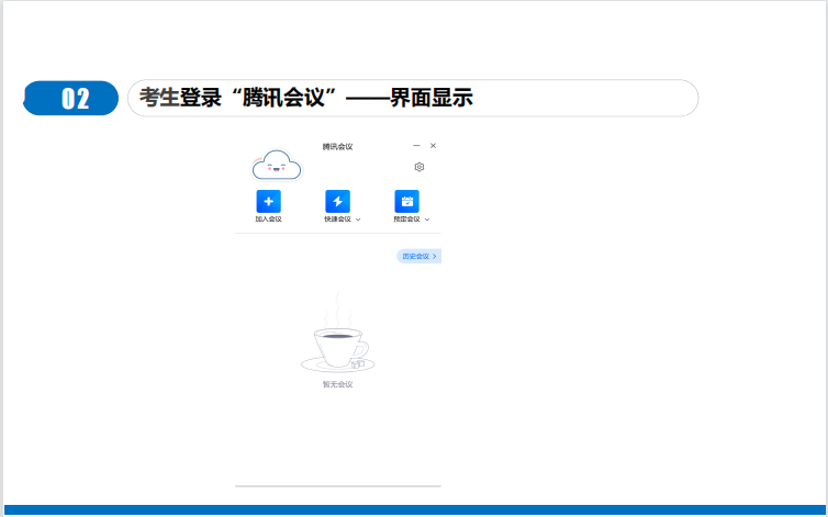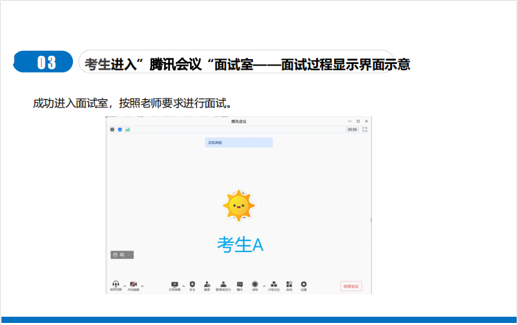 考生根據秘書通知的考前會議號進入考前會議室,統一進行身份認證后秘書宣讀考場規。