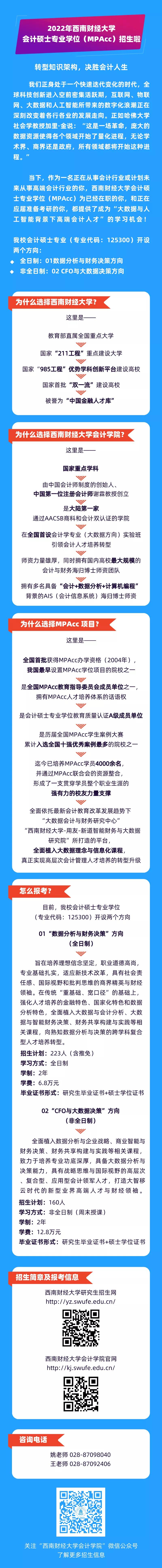 導(dǎo)讀:2022年西南財(cái)經(jīng)大學(xué)會計(jì)碩士專業(yè)學(xué)位(MPAcc)招生啦!