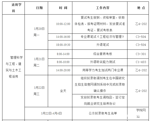 1. 一志愿報考我院管理科學與工程(全日制)和建筑與土木工程(全日制)考生,初試成績須符合2017年全國碩士研究生招生考試考生進入復試的初試成績的基本要求(A類);