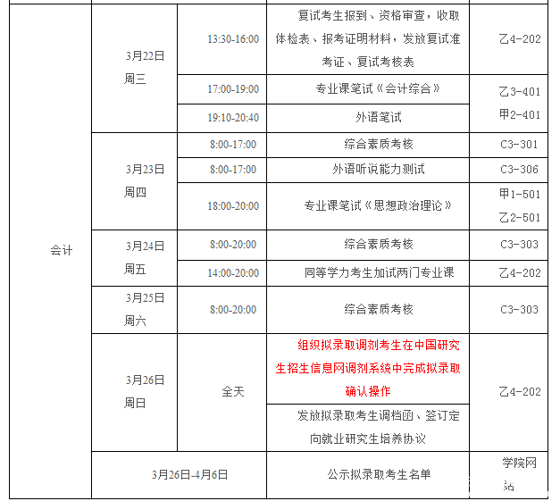會計(非全日制)的一志愿合格考生錄取結束后,從未被錄取的會計(全日制)復試合格考生中,按照入學考試加權總成績依次調劑錄取。