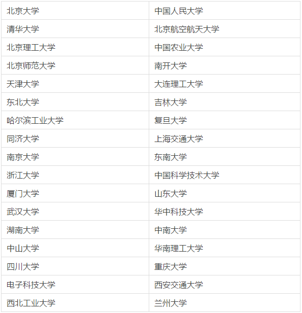 進行自主確定復試分數線改革試點的高校名單(34所)