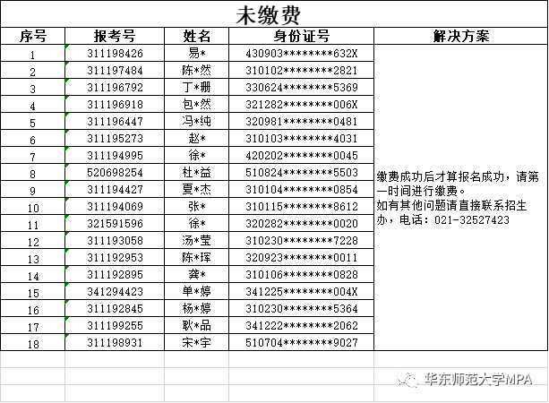 根據(jù)《華東師范大學2021年碩士研究生招生章程》和《華東師范大學2021年公共管理碩士(MPA雙證)研究生招生簡章》,我中心對網(wǎng)報期間MPA考生有效報名信息進行了篩選。