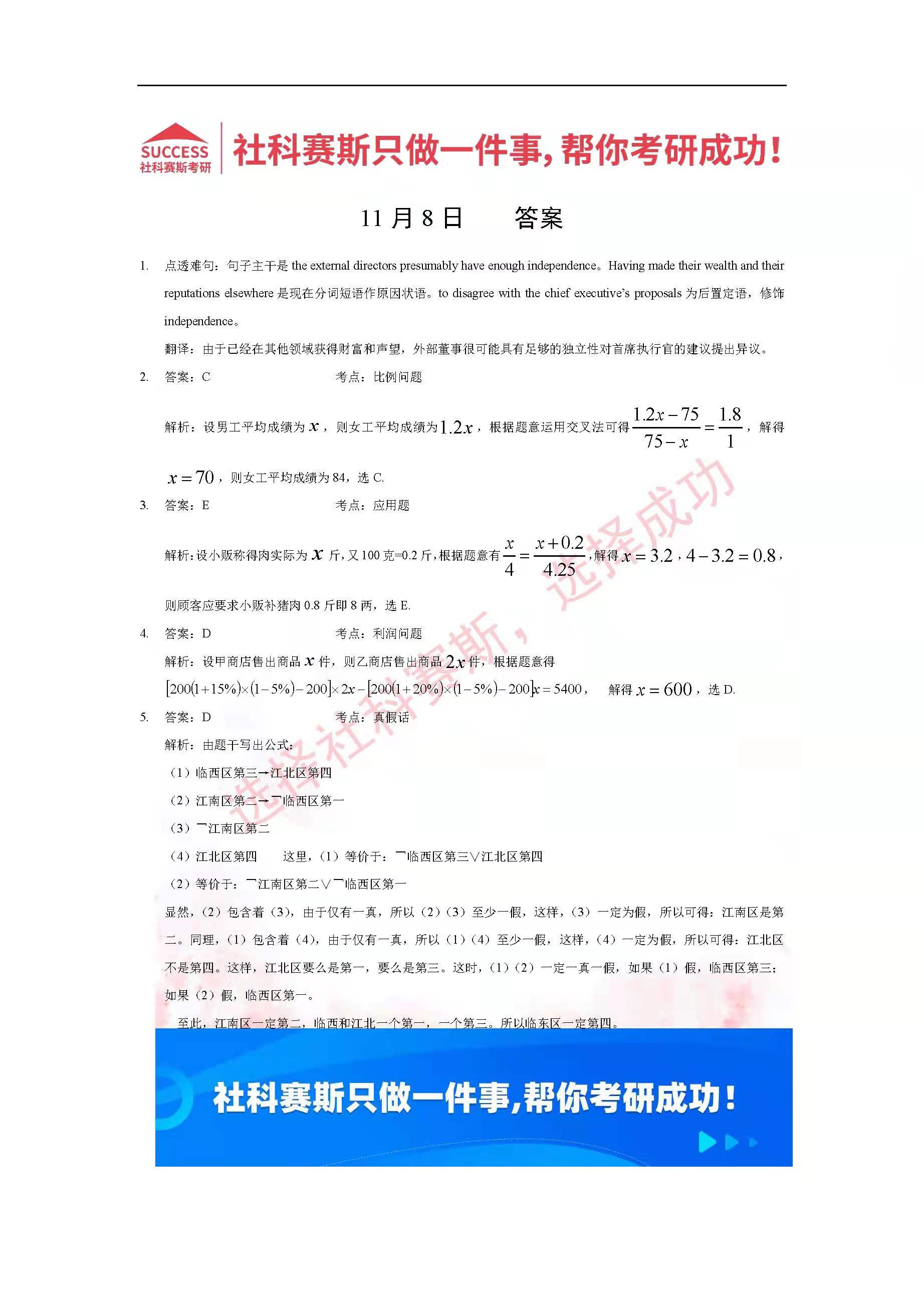 導(dǎo)讀:考研是一場持久戰(zhàn),保持良好的學(xué)習(xí)習(xí)慣,是能確保復(fù)習(xí)高效的關(guān)鍵。今天社科賽斯MBA備考網(wǎng)小編整理了“2022管理類聯(lián)考11月8日每日一練及答案”的內(nèi)容,希望能對廣大考生有所幫助。