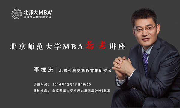 距離MBA聯(lián)考的時(shí)間越來(lái)越近,你的心情是更加焦躁還是更加坦然呢?面對(duì)不足10天的備考時(shí)間,根本要素是遠(yuǎn)離誤區(qū),直擊目標(biāo)!想成為這樣少走彎路的機(jī)智boy/girl嗎?快來(lái)參加北京師范大學(xué)MBA教育中心聯(lián)合北京社科賽斯集團(tuán)推出的備考公益講座,帶領(lǐng)考生走進(jìn)2017MBA的解密之旅。