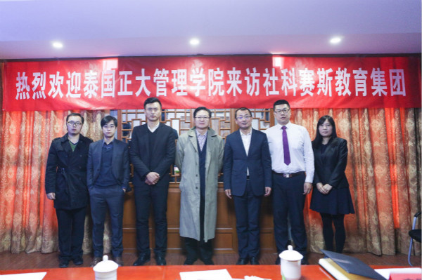 2017年3月8日,泰國正大管理學院院長洪風教授一行訪問北京社科賽斯科技有限公司。參與本場會議的嘉賓有:泰國正大管理學院院長洪風教授,泰國正大管理學院陳奡教授、李旻鑫主任,北京社科賽斯科技有限公司董事長甄誠先生、郭炎宏副校長、MPAcc事業部總監鄭玉超老師與國際事業部總監張偉琳老師。