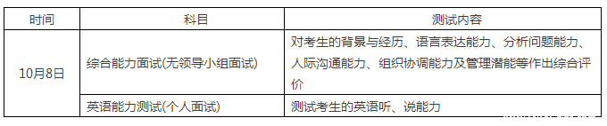 提前面試綜合成績= 背景評估得分×25% + 英語面試成績×20% + 管理綜合面試成績×55%