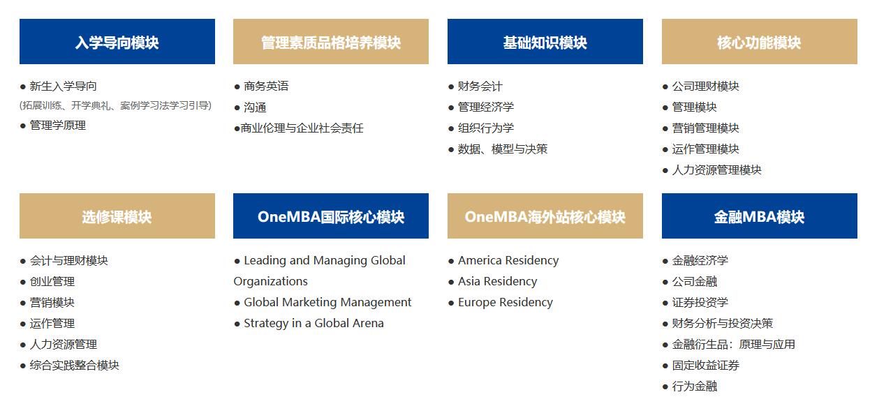 OneMBA培養學生成長為掌握現代管理理論和方法、通曉國際企業運作方式和慣例、善于處理全球化過程中不同歷史文化背景下的復雜商業關系的高端管理人才,近三年來在英國《金融時報》(Financial Times)的全球MBA排名27-34位。