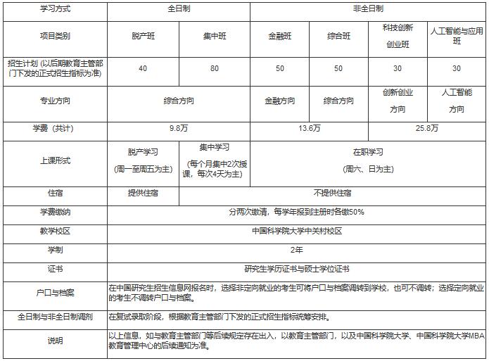一、中國科學院大學2021年MBA計劃招生類別