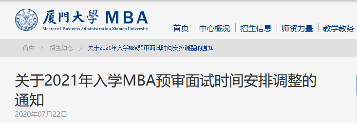 以上就是“2021年MBA提前面試 |2021年廈門大學MBA提面調(diào)整通知”的全部內(nèi)容!更多考研信息持續(xù)更新,多多關(guān)注!祝考研順利,馬到成功!