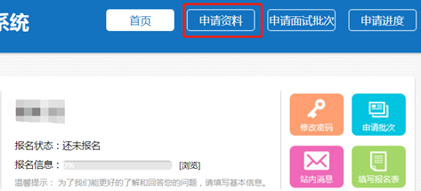 系統注冊成功后,申請人需用郵箱登錄系統后,點擊上面菜單欄“申請資料”開始網申,填寫申請報名表。