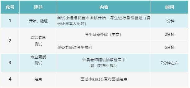 3.考生首先進行2分鐘中文自我介紹,然后進行回答及自由問答環節,最后完成面試。