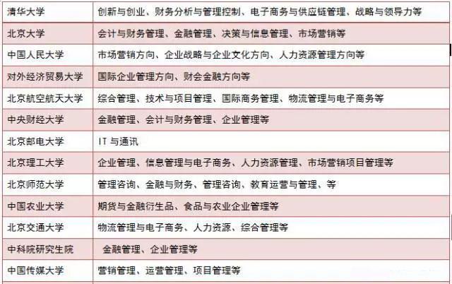北京地區部分院校MBA方向參考如下: