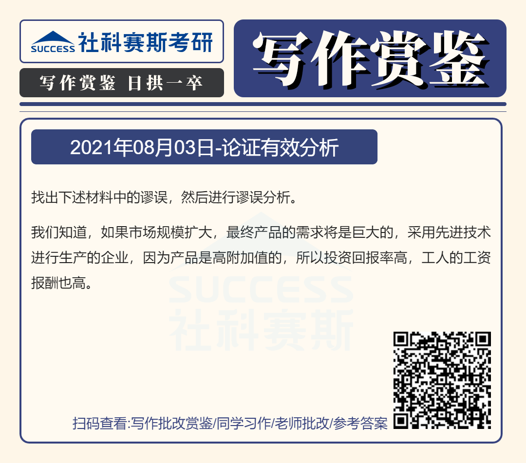 以上就是“2022MBA寫作:2022MBA聯考寫作批改賞鑒及參考答案(8月3日)”的全部內容,更多寫作精選習題,請持續關注社科賽斯MBA備考網!