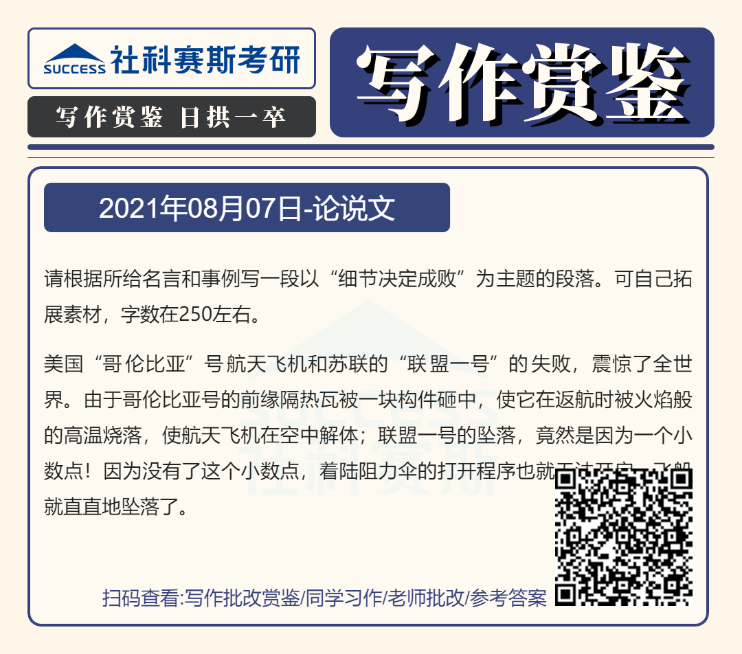 以上就是“2022MBA寫作:2022MBA聯考寫作批改賞鑒及參考答案(8月7日)”的全部內容,更多寫作精選習題,請持續關注社科賽斯MBA備考網!