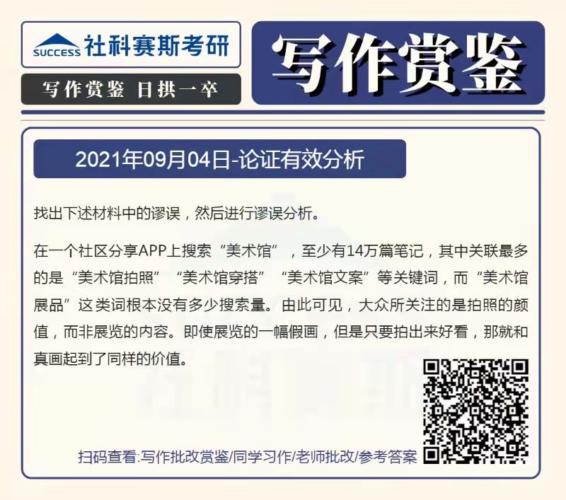以上就是“2022MBA寫作:2022MBA聯(lián)考寫作批改賞鑒及參考答案(9月4日)”的全部?jī)?nèi)容,更多寫作精選習(xí)題,請(qǐng)持續(xù)關(guān)注社科賽斯MBA備考網(wǎng)!