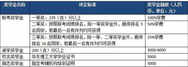 3.校友獎(jiǎng)學(xué)金:考生在規(guī)定時(shí)間段提出申請(qǐng)并提供華東理工大學(xué)畢業(yè)證書后評(píng)定;