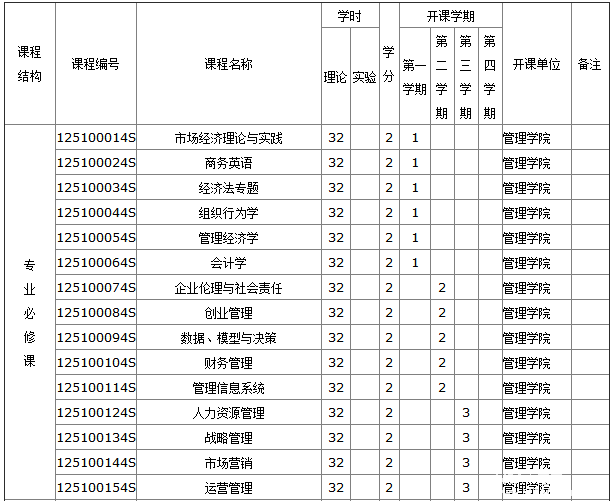 2. 工商管理碩士研究生要求學(xué)分為50學(xué)分。其中專業(yè)必修課30學(xué)分,專業(yè)選修課10學(xué)分和實(shí)踐課10學(xué)分,640個(gè)學(xué)時(shí)。