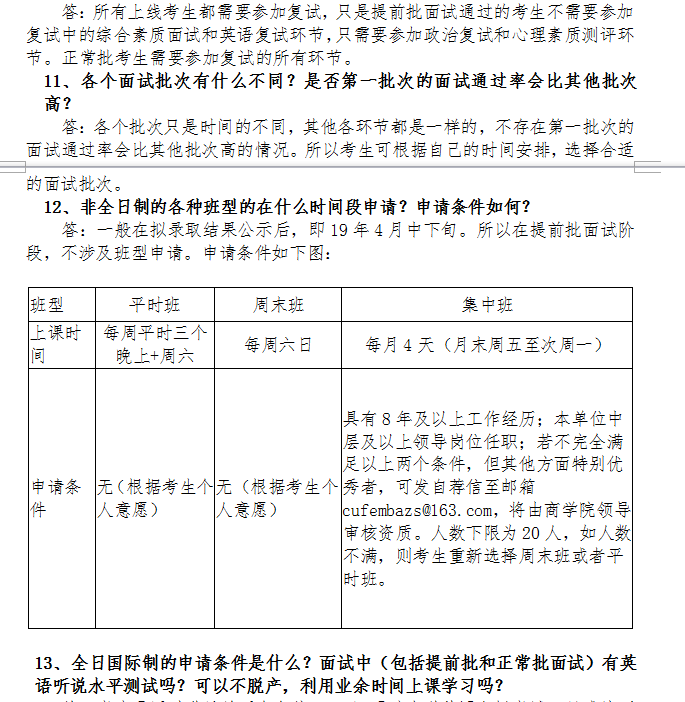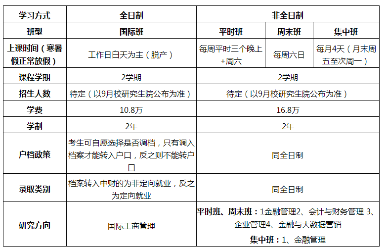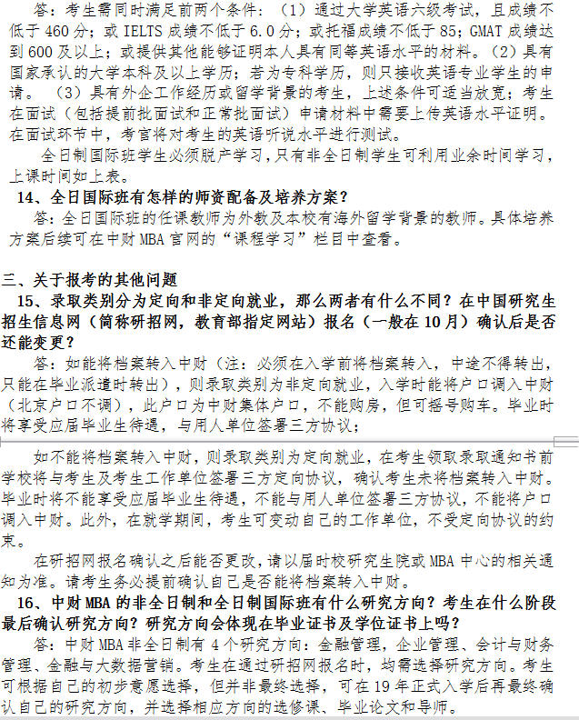 4、關于學習方式:全日制和非全日制的選擇:考生在提前批申請材料中,必須選擇學習方式,且必須與通過中國研究生招生信息網(簡稱研招網,教育部指定網站)報名時(一般在10月)選擇的學習方式一致。即,在提前批選擇了全日制,在研招網報名時也必須選擇全日制,非全日制同理。如果不一致,已經取得的A類預錄取資格降為B類預錄取資格;已經取得的B類預錄取資格降為無提前批面試成績,只能在聯考成績達到中財MBA復試分數線后,參加正常批復試。