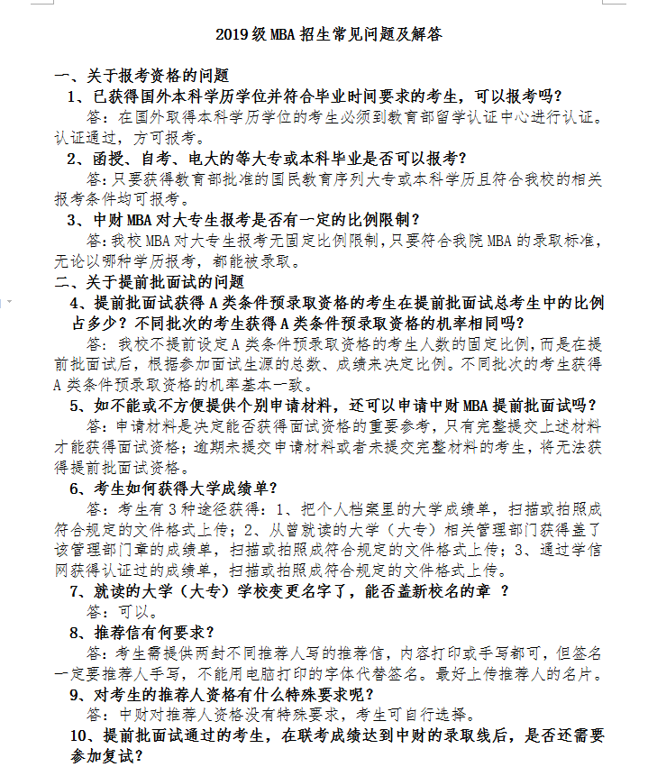 導讀:2018年5月11日,中央財經大學2019年工商管理專業MBA項目MBA提前面試項目啟動了,以下是相關內容: